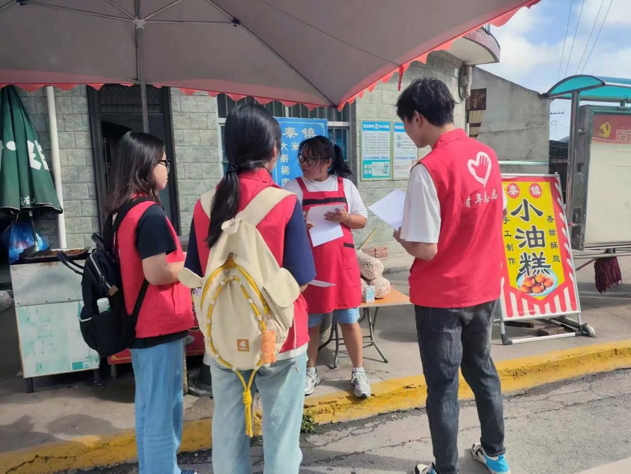 在祥峪口村,为调动山脉周围村庄村民积极主动参与到保护环境的任务中,团队成员们在村口开展微塑料科普宣传活动,分发微塑料的有关资料和相关试卷,让村民了解微塑料怎样产生以及它的重大危害,记录祥峪口村垃圾分类情况,与祥峪口村当地环保人员交流微塑料的相关知识,增长环保领域的相关经验。